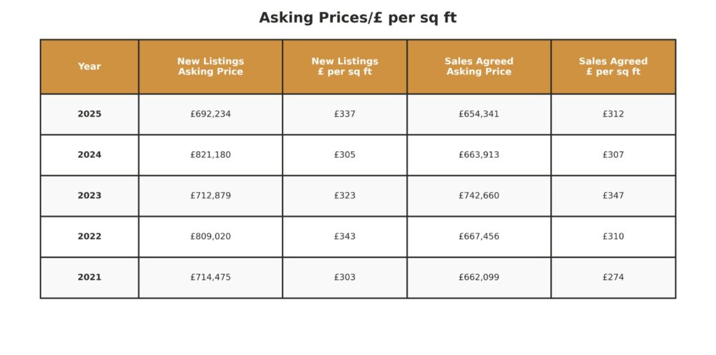 • Average sale agreed price £654,341