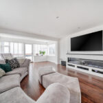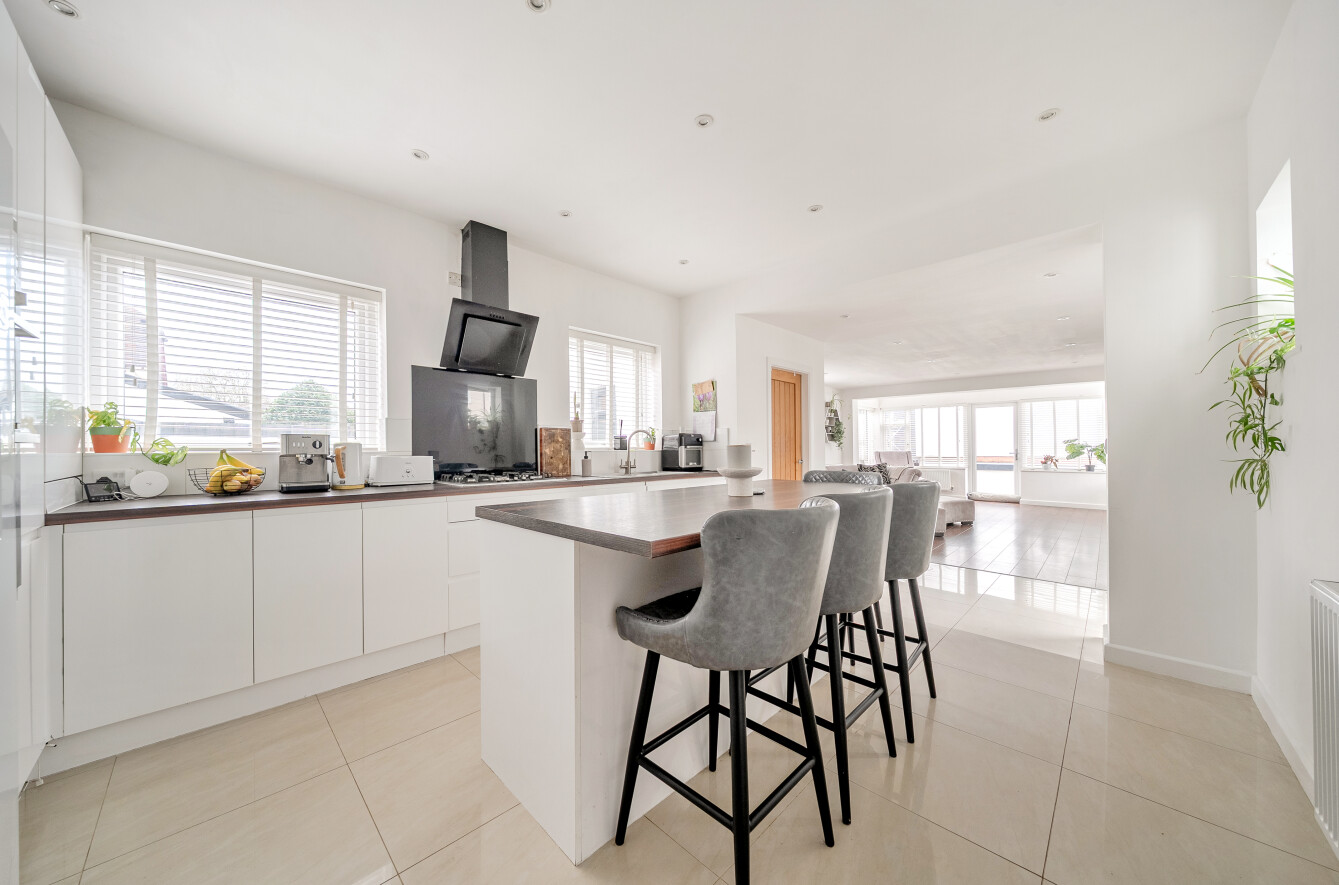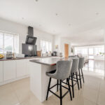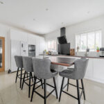 The ground floor is designed with entertaining in mind. A large, open-plan kitchen and family area provide a wonderful space for socialising or keeping an eye on children at play, while a separate lounge offers a cosy retreat for quieter moments. Adjacent to the kitchen, a utility room adds practical storage and functionality.