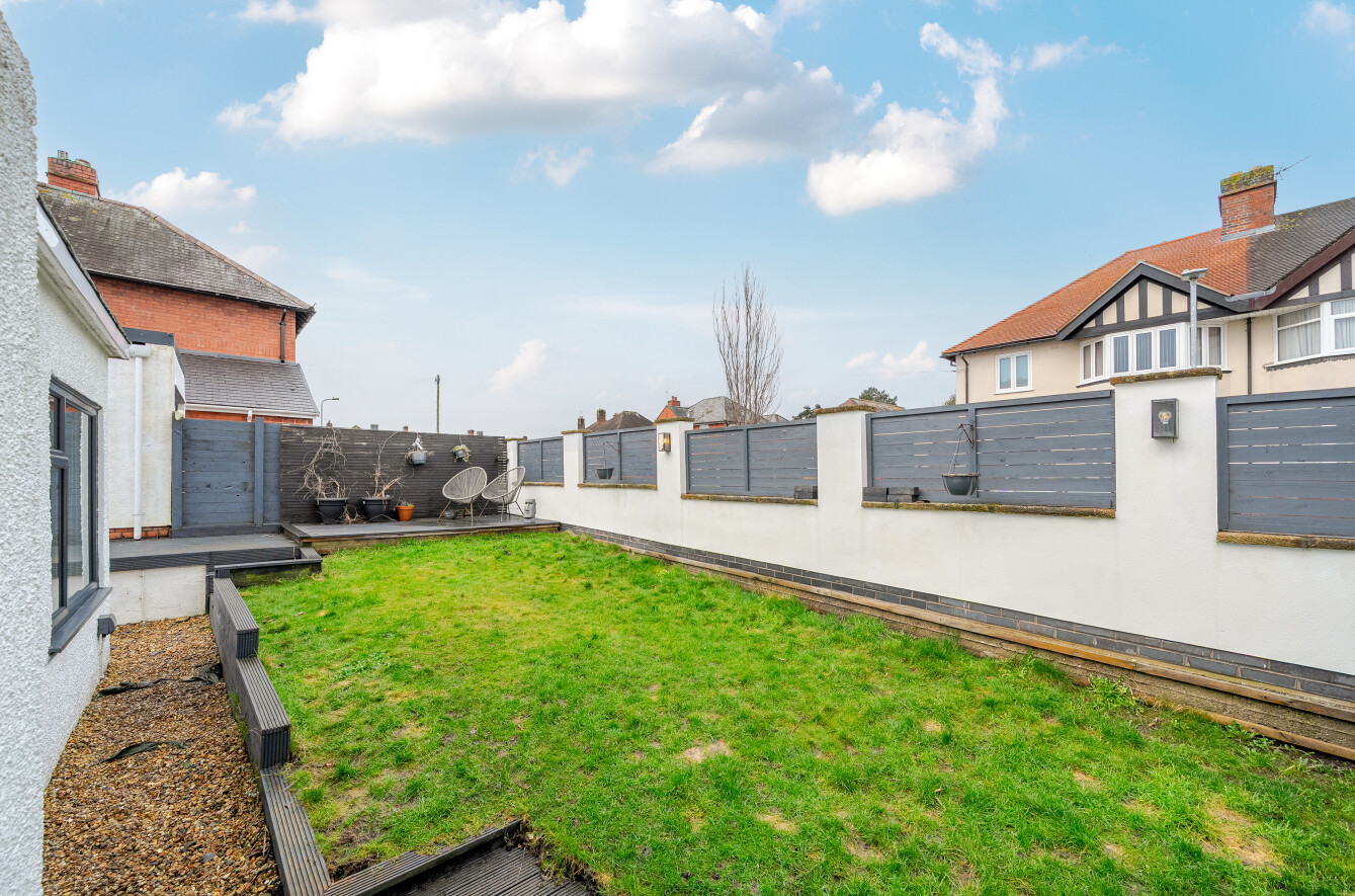 Upstairs, three well-proportioned bedrooms are complemented by a family bathroom. Outside, the property benefits from front, side, and rear gardens, providing space for children to play or for outdoor entertaining. A driveway at the rear offers convenient off-road parking.
