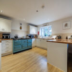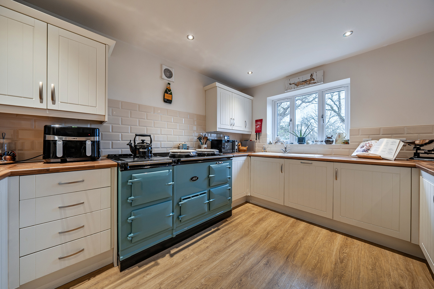 Finished in timeless shaker-style cabinetry with solid wood worktops and tiled splashbacks, the kitchen blends character with functionality. At its centre sits a high-specification, no-expense-spared modern electric AGA — a true statement feature that elevates both the style and quality of the space.