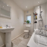 The family bathroom is modern, bright and well appointed, complementing the ensuite and downstairs WC to provide excellent facilities across both floors.