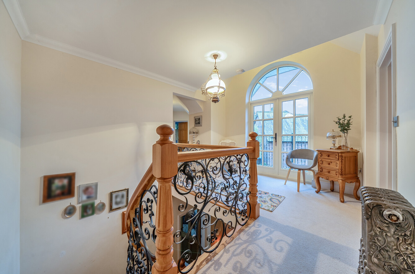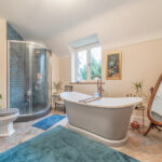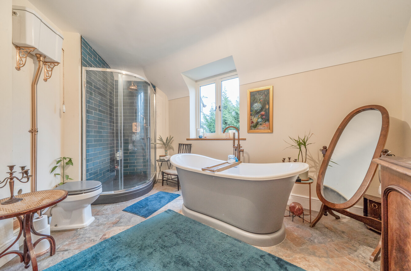 Upstairs, the principal suite provides a real sense of luxury with a walk-on Juliet balcony, a walk-in dressing room, and a beautifully appointed en suite complete with a roll-top bath. Three further double bedrooms and a generous family bathroom complete the first floor, each finished with care and attention to detail.