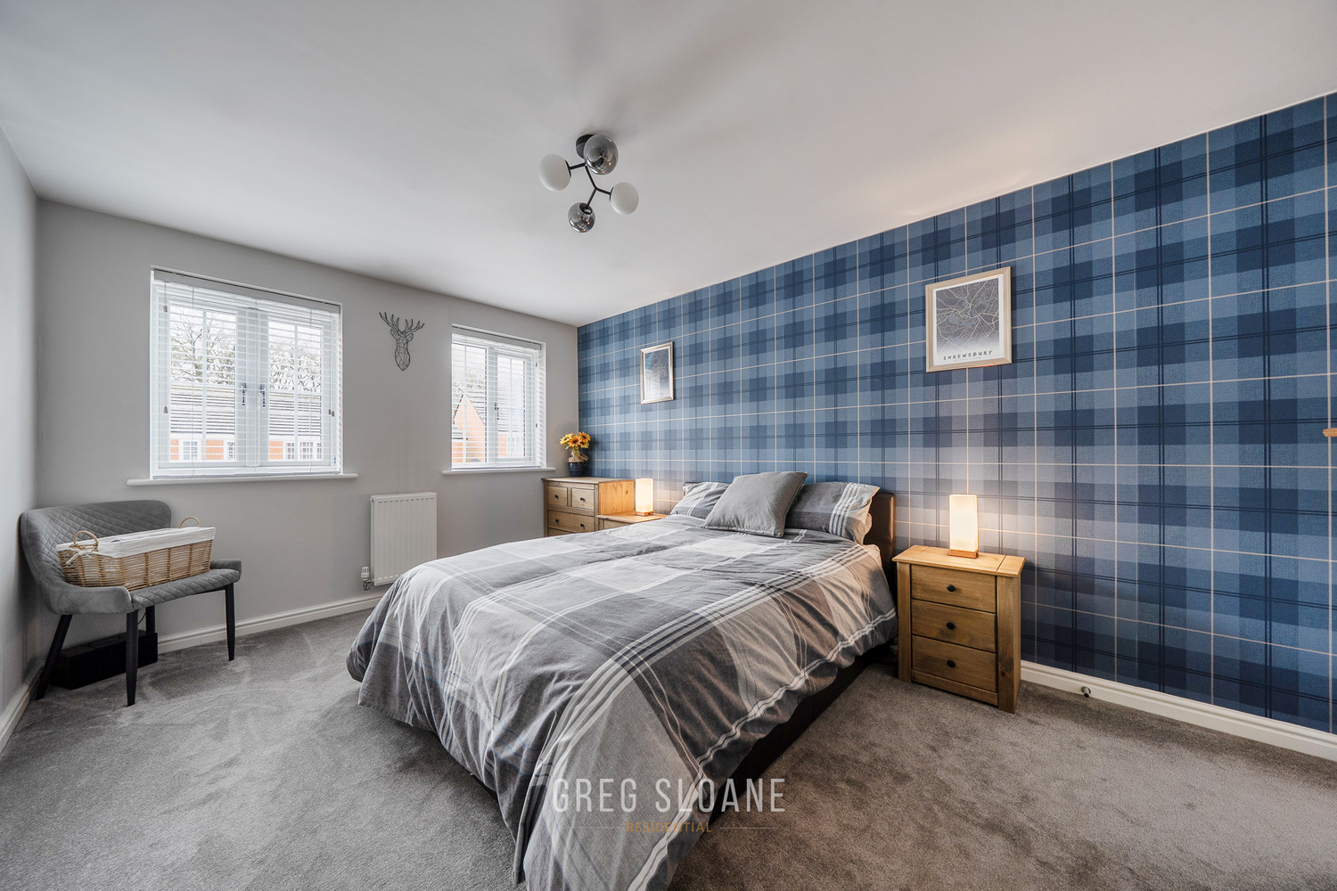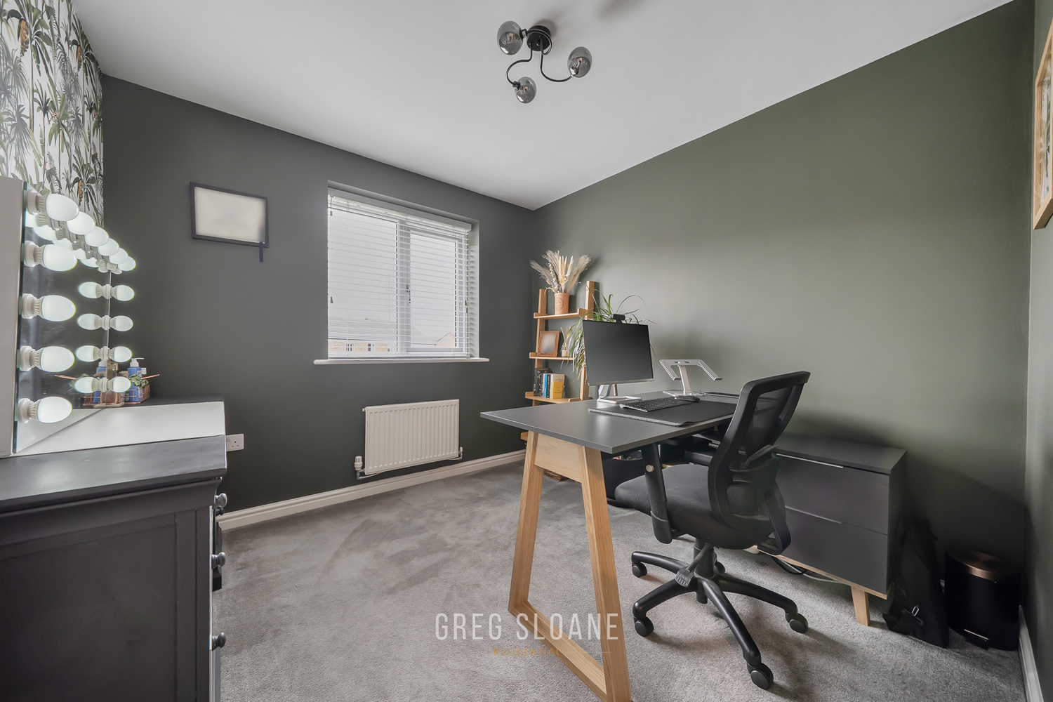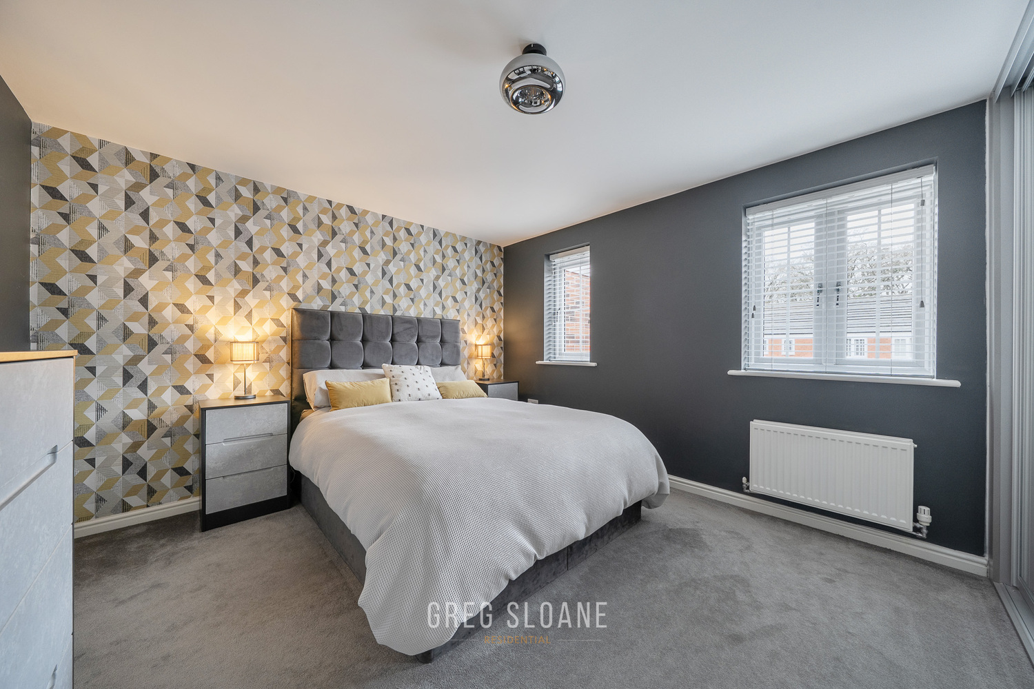 Upstairs, four well-proportioned bedrooms provide excellent flexibility for growing families, home working, or visiting guests. The principal bedroom enjoys built-in mirrored wardrobes and a stylish ensuite, creating a private and well-appointed sanctuary, while the remaining bedrooms are served by the modern family bathroom.
