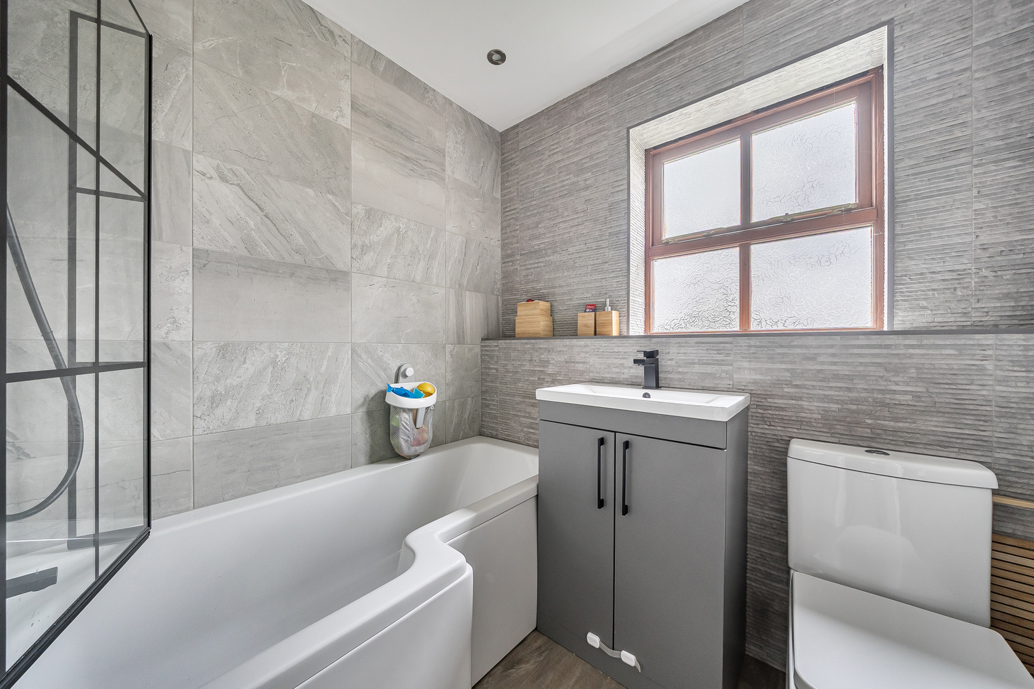 The principal bedroom benefits from the added luxury of a private ensuite shower room, enhancing both comfort and practicality. Finished in a contemporary style, the space offers modern tiling, quality sanitaryware and a clean, cohesive design. The inclusion of an ensuite adds a desirable layer of convenience for busy family life while also elevating the home’s overall appeal for professional buyers and upsizers alike.