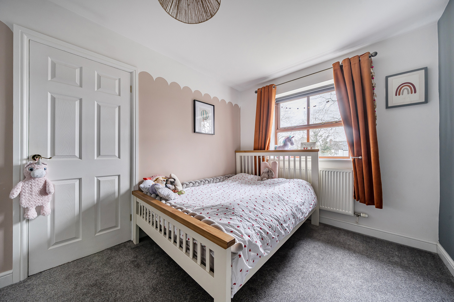 Upstairs, the property offers well-balanced bedroom accommodation ideal for family life. The principal bedroom is spacious and stylishly finished, with feature panelling adding character and depth. The remaining bedrooms are generous and versatile, perfectly suited for children, guests or home working.