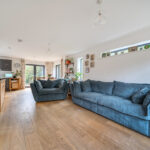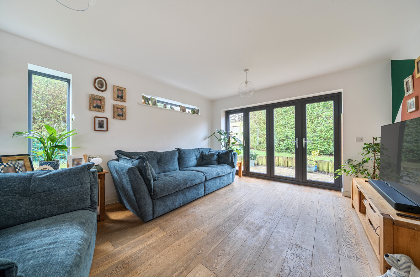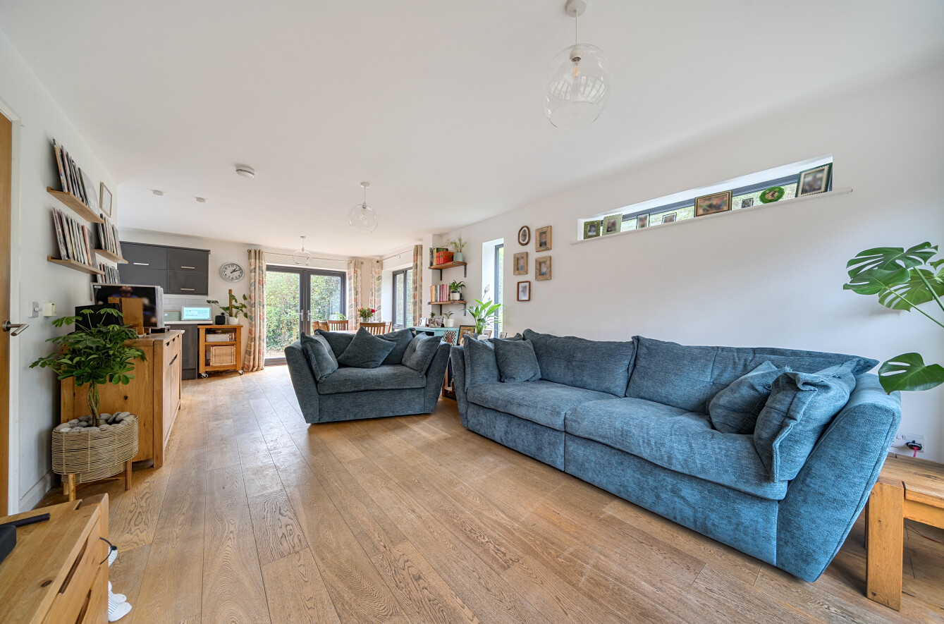 Internally, the property has been carefully planned to maximise both flow and natural light. The open plan living and dining area forms the heart of the home, creating a sociable and versatile environment ideal for modern family life and entertaining. Multiple low-sill windows and expansive bi-fold doors flood the space with natural light while providing seamless access to the gardens.