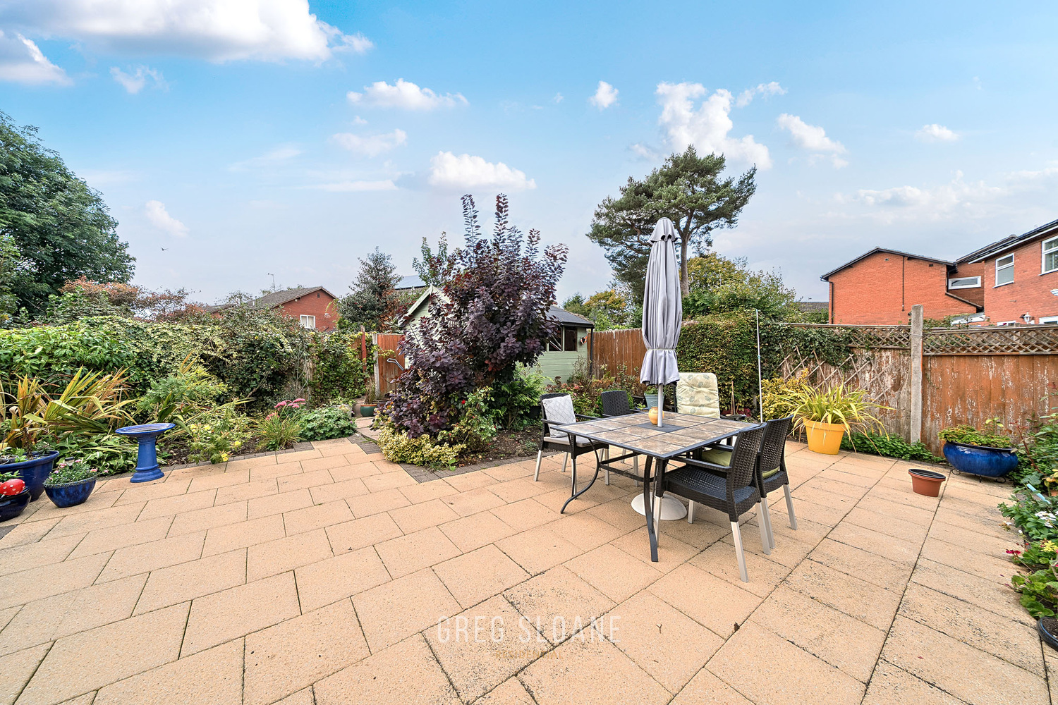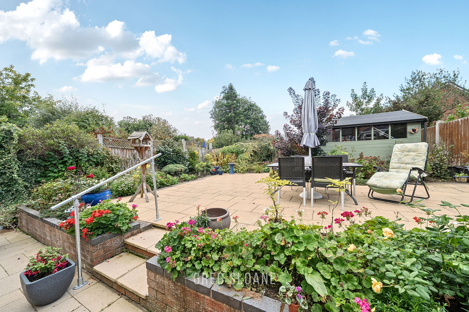 Step outside and the rear garden is ready to be enjoyed. South-westerly facing, it catches the sun beautifully, while the paved layout keeps things low-maintenance. Established borders and a mix of colourful planting add character, creating a relaxed, leafy backdrop for barbecues, evening drinks, or simply winding down at the end of the day.