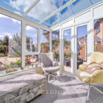 Adjoining the kitchen, the dining room flows seamlessly into the conservatory – a brilliant space for entertaining while enjoying leafy garden views. The living room offers a more relaxed vibe, with its bay window drawing in plenty of natural light to keep things fresh and airy.
