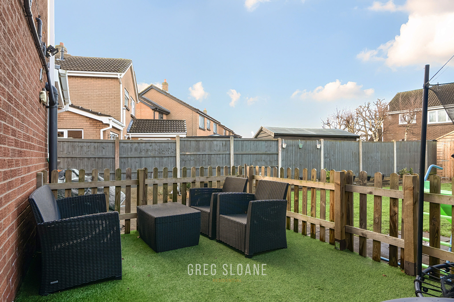The rear garden itself is generously sized and beautifully set up for relaxing and entertaining, with a decked patio area, plenty of lawn, raised planters, a shed, and even a greenhouse – ideal if you fancy getting those green fingers going.