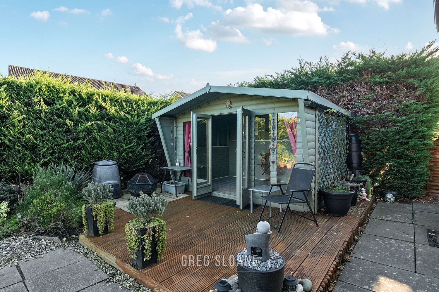 A neatly presented detached bungalow in a quiet cul-de-sac, offering generous gardens, two bedrooms, and a large garden room - with NO UPWARD CHAIN.