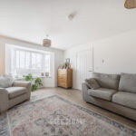 Step inside and you’re welcomed into a central entrance hall which leads through to the heart of the home. To one side is the living room – a wonderfully bright and comfortable space, enhanced by a bay window overlooking the green.