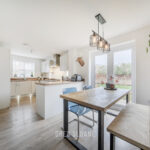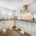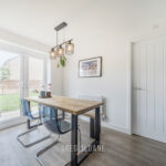 To the rear, the kitchen diner provides a superb social space. The modern kitchen is fitted with a full range of integrated appliances, along with ample storage and worktop space to keep any keen cook happy. A breakfast bar and dining area ensure there’s plenty of room for everyday living as well as hosting friends and family – with patio doors opening directly onto the garden beyond.