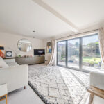 Inside, the proportions are generous. The living room spans the full width of the house – a seriously impressive space that easily accommodates large sofas and family life, with bifold doors framing the garden beautifully.