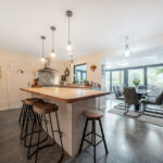 Kitchen and Breakfast Room, the heart of the home, stylish and functional, featuring grey gloss shaker style units, oak worktops, a breakfast island, range cooker, and integrated appliances.