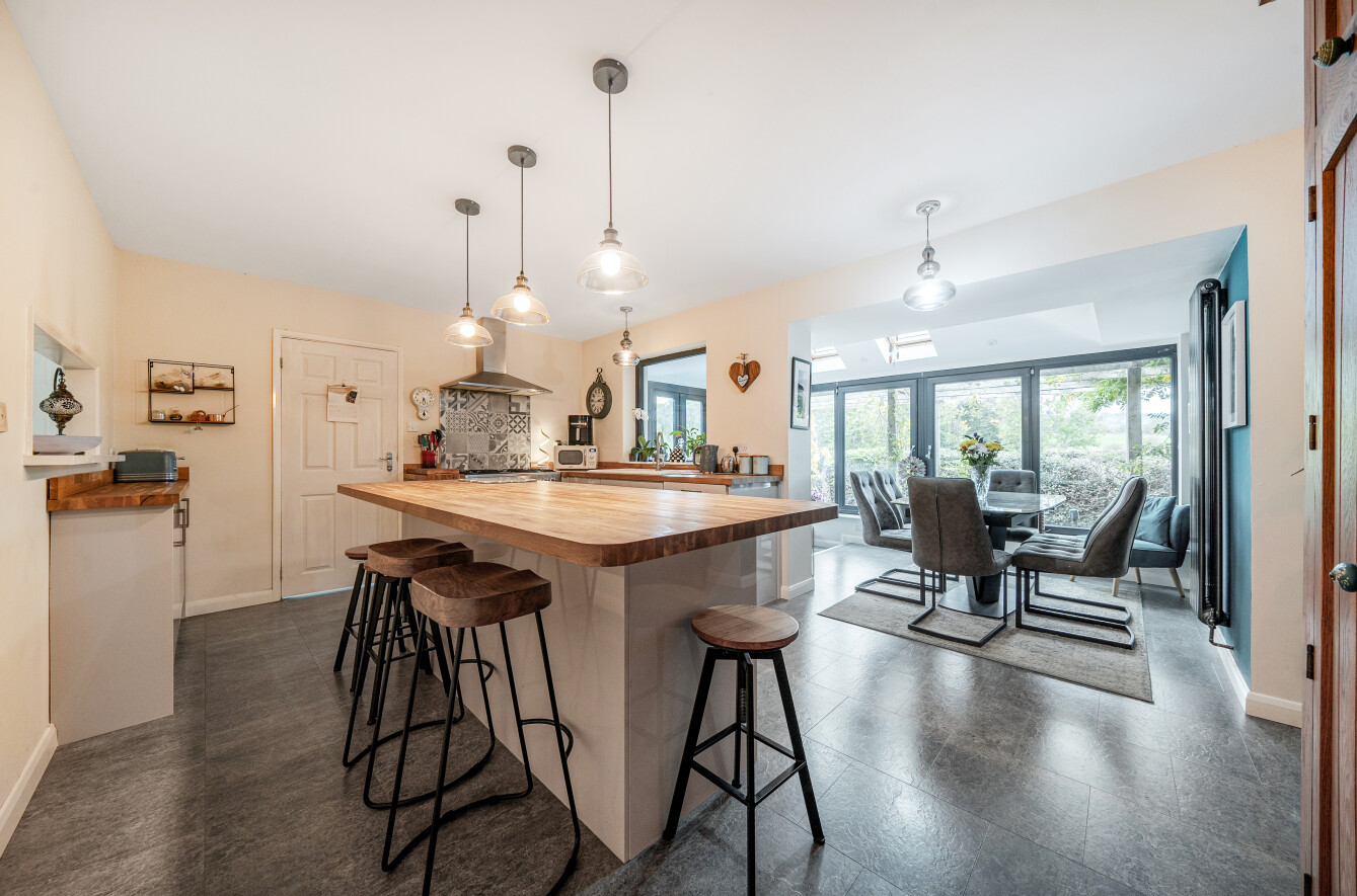 The layout can easily accommodate six bedrooms, or be arranged to include a self contained annexe at one end, perfect for extended family, guests, or an independent workspace. The home also benefits from solar panels, ample parking, and a large tandem garage.