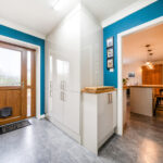 A welcoming porch with tiled flooring and arched windows opens into a bright, spacious hallway with built in storage and access to all principal rooms.