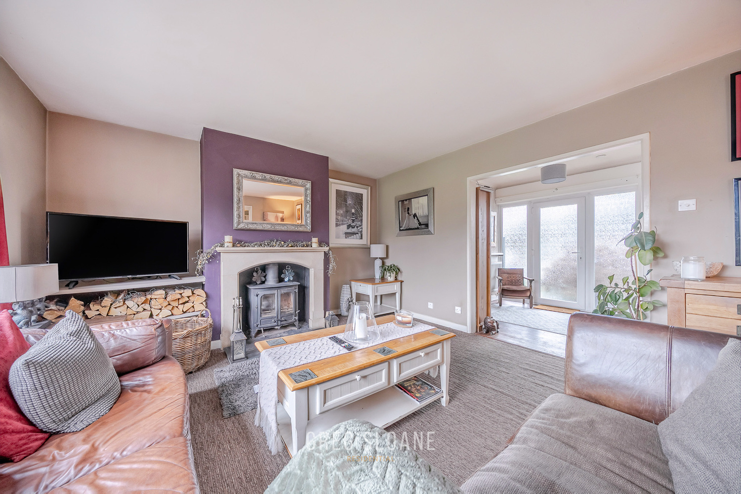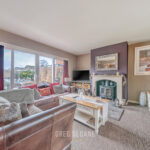 The ground floor space is generous and versatile. The large living room is flooded with natural light and centres around a wonderful, substantial log burner – creating a cosy focal point for winter evenings. Internal doors allow you to either keep the spaces separate or open things up for more sociable, flowing living – perfect for family life and entertaining alike.