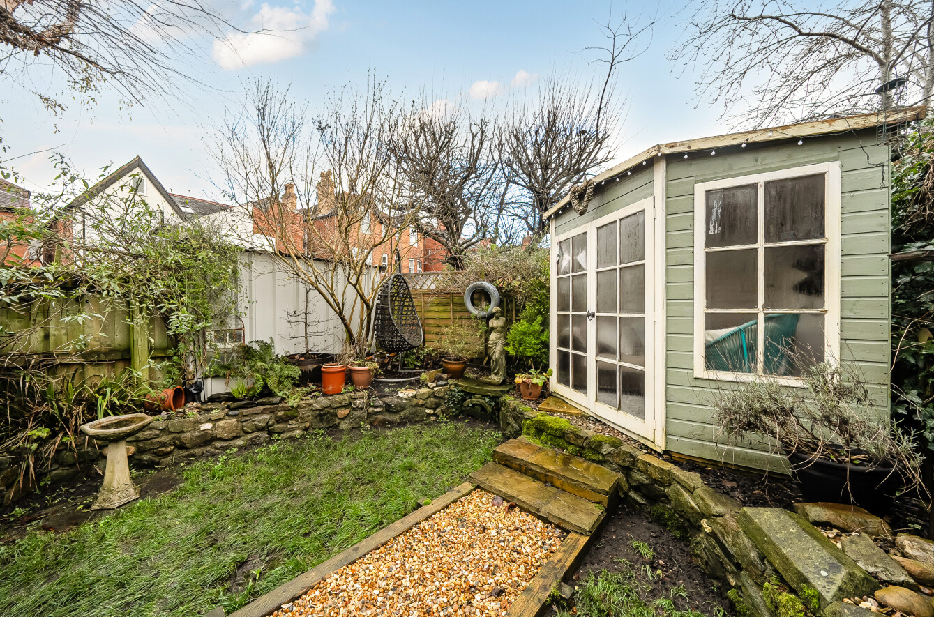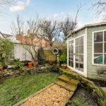 Outside, the fully enclosed garden includes a summer house and has been designed for ease of maintenance, offering privacy and a tranquil space for relaxing or entertaining.