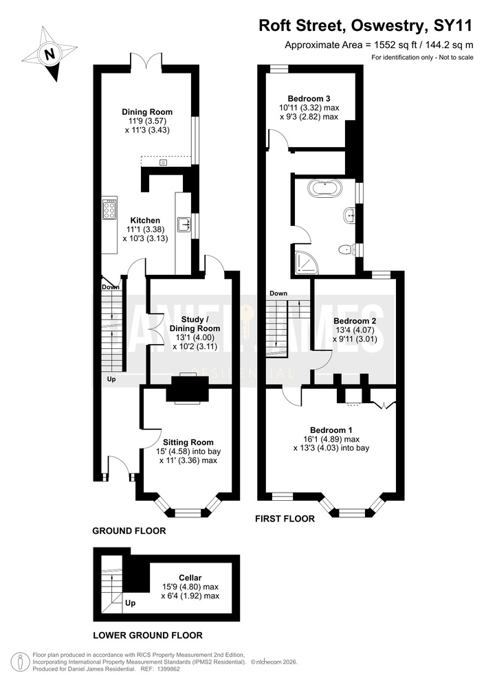 The floor plan has been produced in accordance with the RICS Property Measurement Standards, incorporating the International Property Measurement Standards. No warranty is given regarding the property’s compliance with planning permissions or its current usage. Fixtures and fittings are not included unless specifically stated. While every effort has been made to ensure the accuracy of these details, we recommend contacting us if any aspect is of particular importance to you.