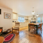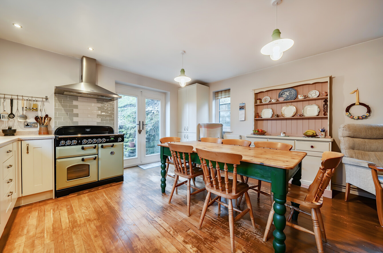 Internally, the home is warm, characterful and beautifully reconfigured by the current owners. The original kitchen has been thoughtfully relocated to create a superb sitting kitchen, complete with a wood burner that forms the heart of the home. This is a true communal space, perfect for entertaining family and friends throughout the seasons. The reconfiguration has also allowed for the addition of a generous utility room, enhancing everyday practicality.