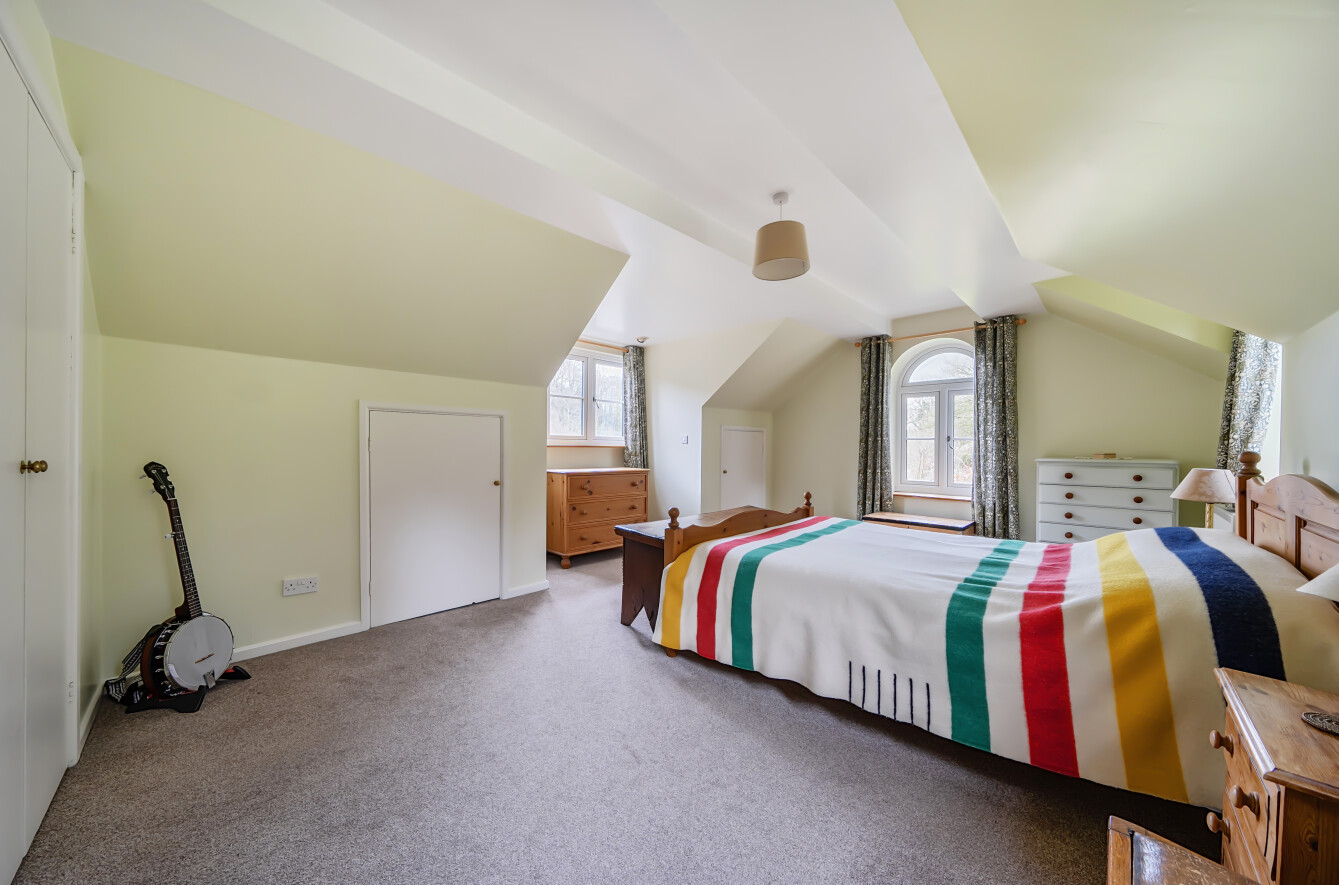 Upstairs, there are three well proportioned double bedrooms, including an impressive 19'5 principal bedroom. A large family bathroom serves the remaining bedrooms, and an additional first floor laundry room with separate WC adds flexibility for modern family living. From the first floor you truly appreciate the elevated setting, particularly from the private rear balcony, an exceptional place to sit and enjoy a spring or summer evening overlooking your land.