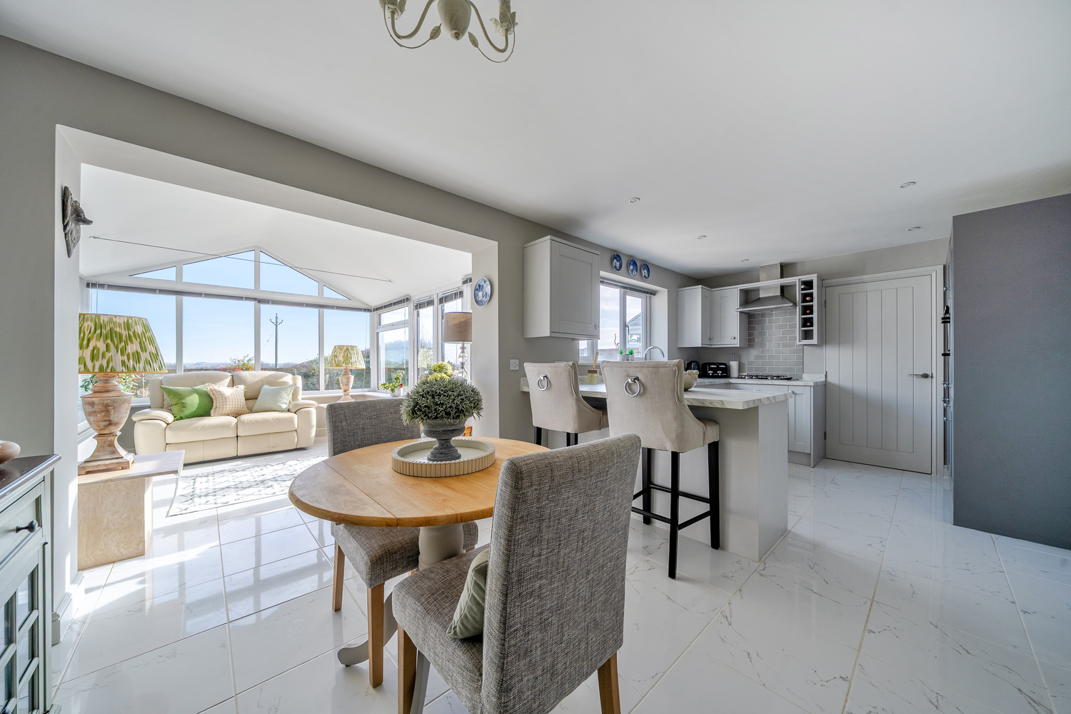 The lounge is equally well proportioned, benefiting from doors that allow light to travel from front to back while also providing direct access into the garden. A standout feature is the garden room, a beautiful addition that can be enjoyed throughout the seasons, offering a tranquil place to relax while overlooking the garden and open fields beyond.