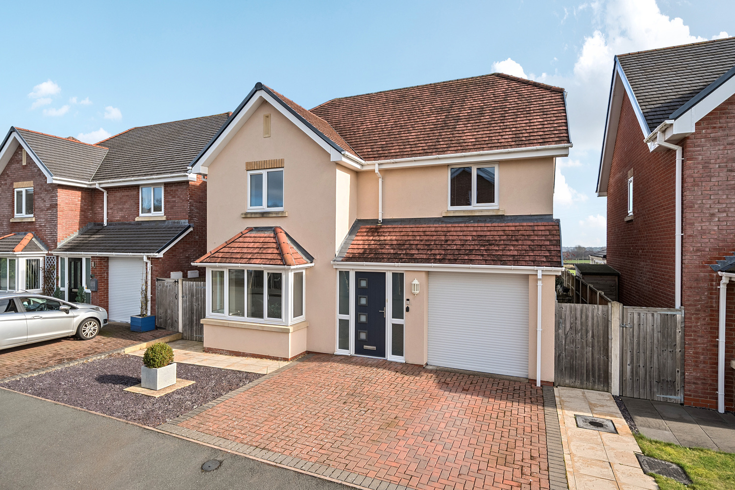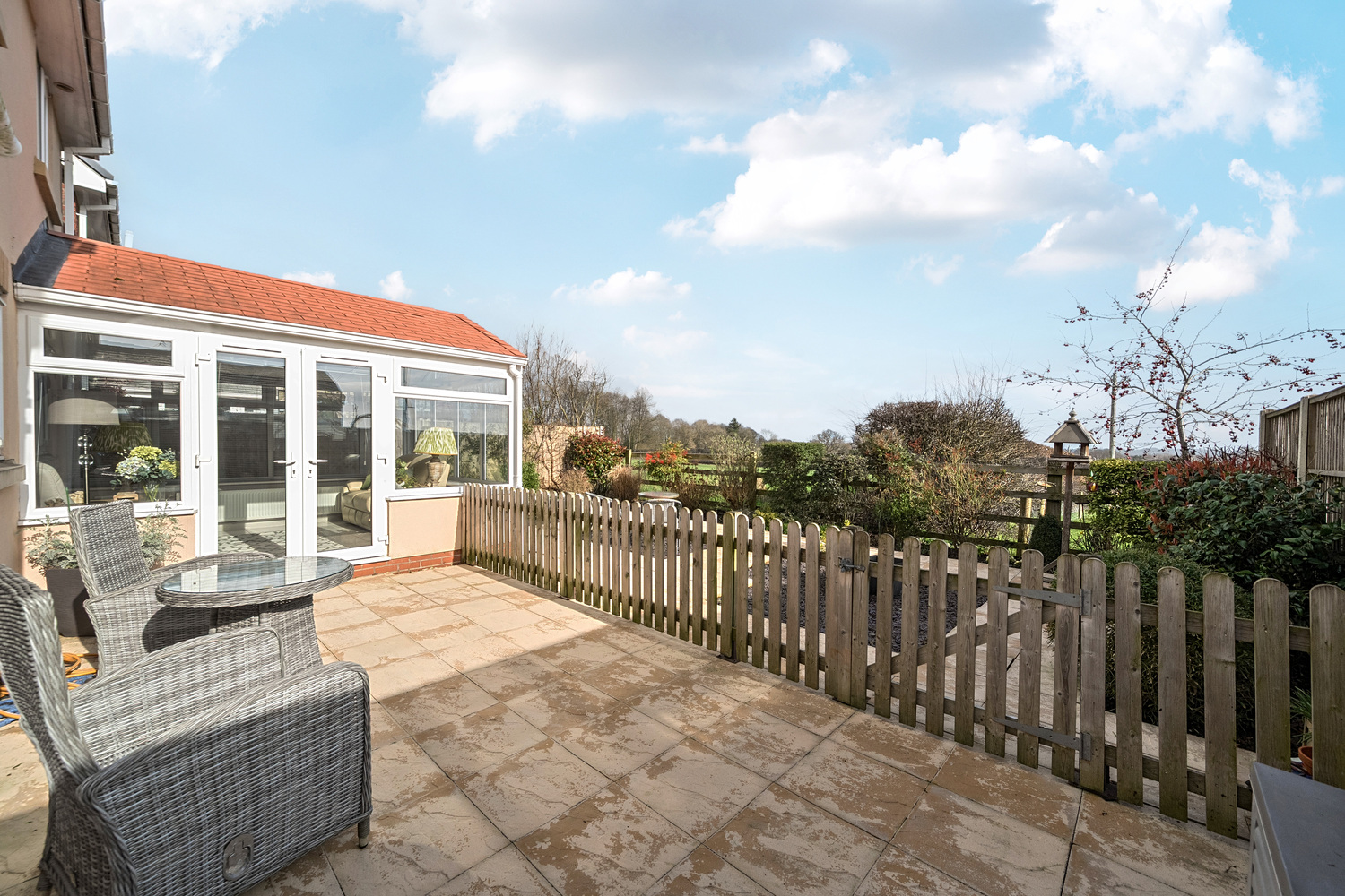 Externally, the home continues to impress. The garden has been designed with low maintenance in mind, allowing you to enjoy the far reaching field views without the burden of extensive upkeep. To the front, there is ample driveway parking and a garage, further enhancing practicality.
