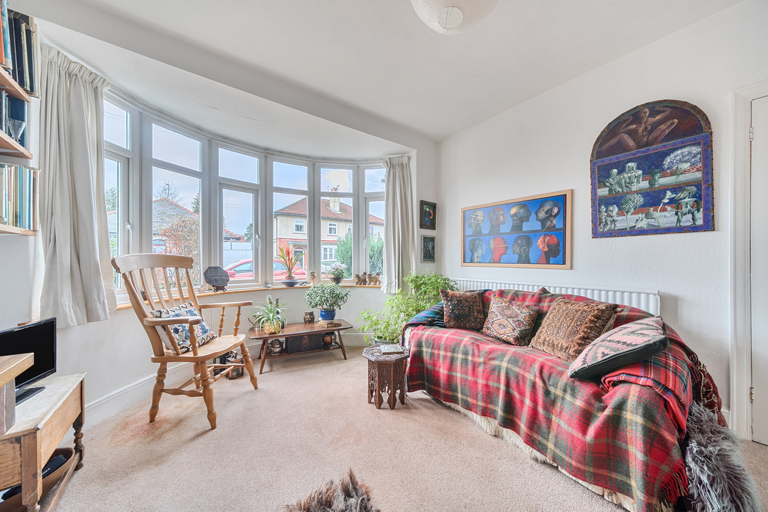 To the front is a bright and well-sized living room with attractive bay window, enjoying excellent natural light and offering a comfortable reception space. To the rear is a separate dining/sitting room with doors opening directly onto the garden, providing an ideal space for everyday living and entertaining.