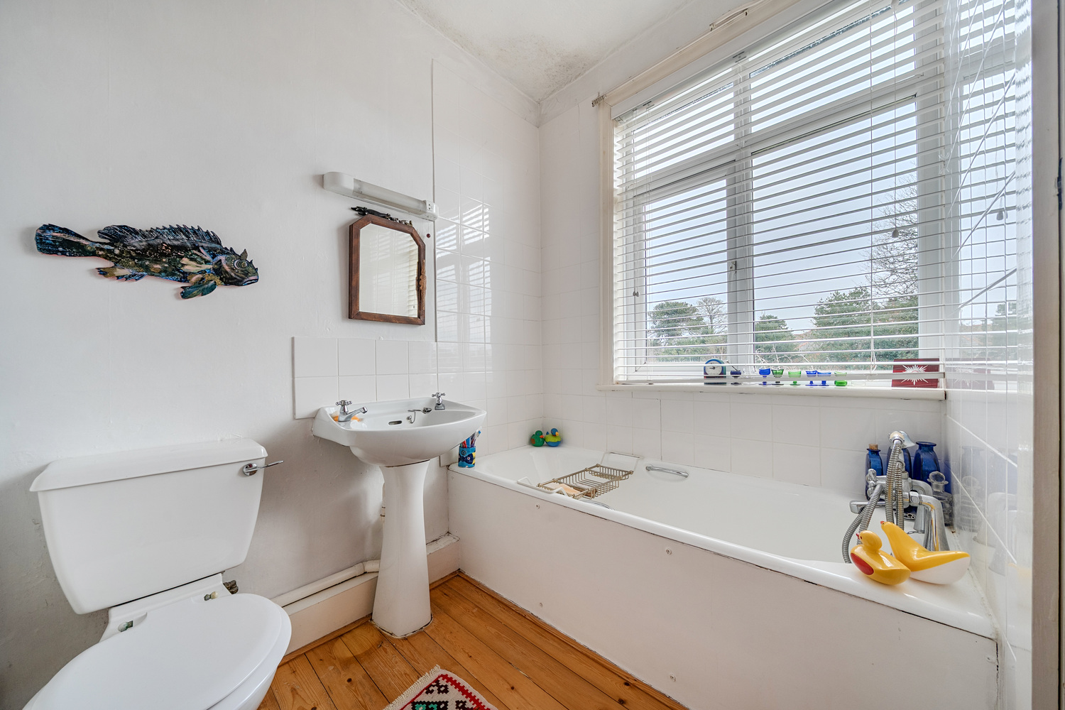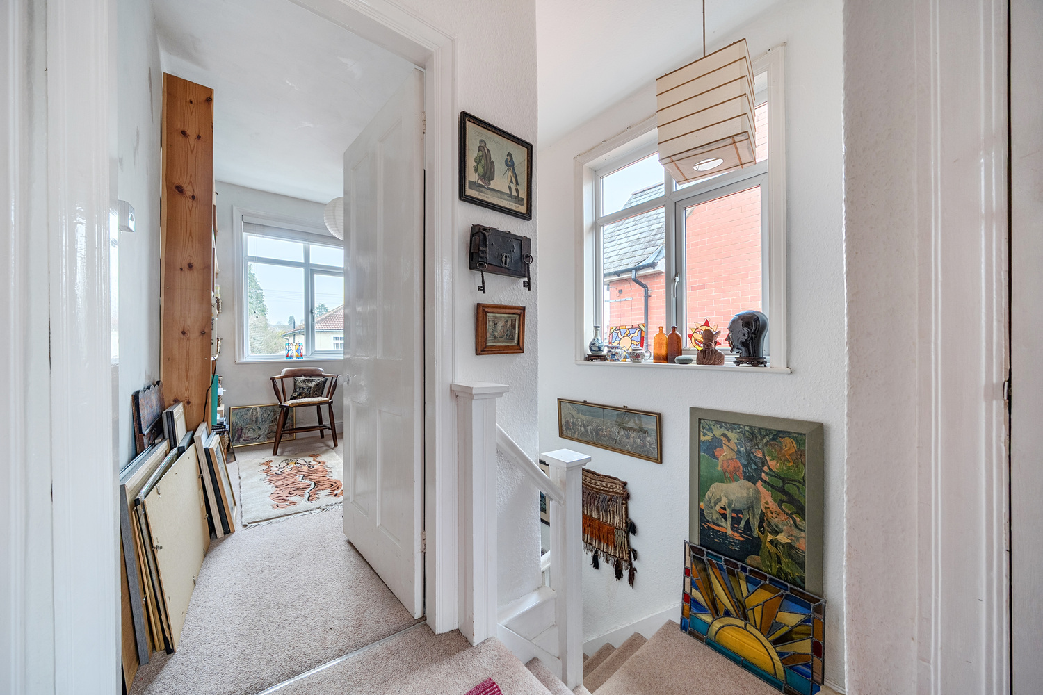 To the first floor, the property offers three well-proportioned bedrooms, including a generous principal bedroom and two further rooms suitable for guest accommodation, home office or family use. The bathroom is fitted with a three-piece suite and benefits from a large window providing natural light.