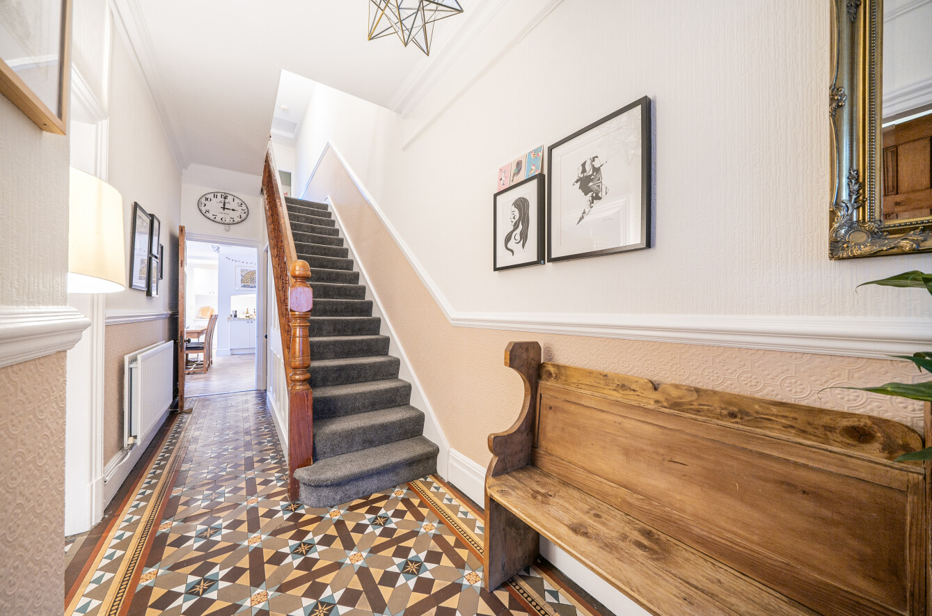 This beautifully presented Victorian townhouse offers approximately 1,800 sq ft of accommodation, delivering the perfect blend of period charm and modern family living. From the very first moment, the home makes a striking impression, with a stunning refurbished Victorian front door opening into an entrance hall adorned with original Mintons tiled flooring, immediately setting the tone for the quality and character found throughout.