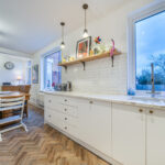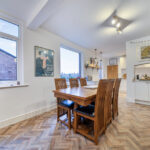 The sense of space is evident across two large and elegant reception rooms, both rich in period features including working fireplaces, and designed to suit modern family life as well as formal entertaining. The second reception room benefits from a sit-out balcony, creating a wonderful connection between indoor and outdoor living and offering a peaceful spot for morning coffee or evening relaxation.