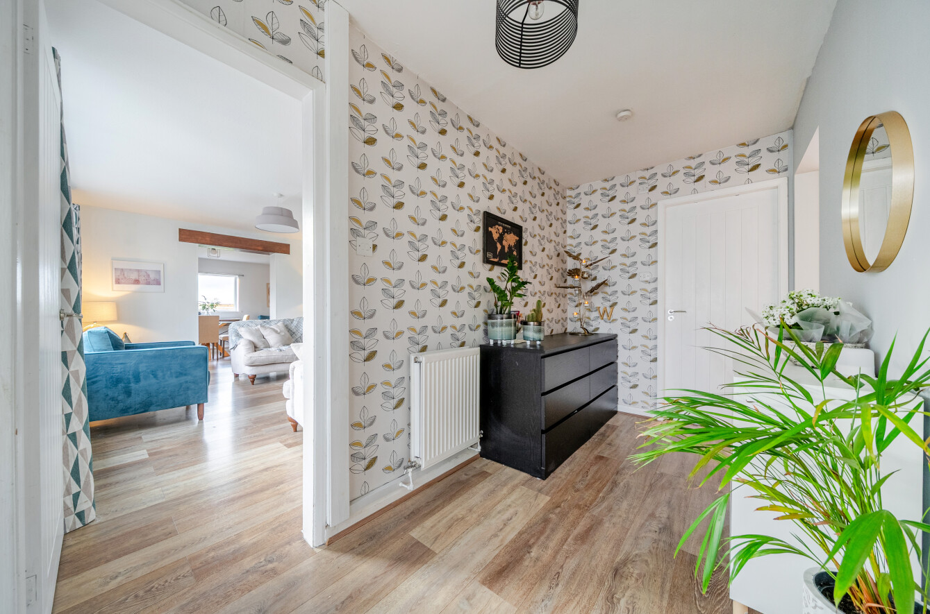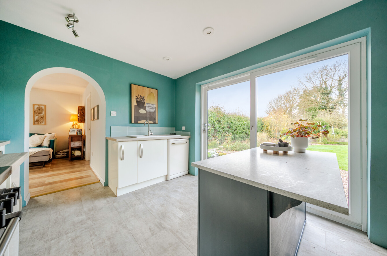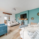 From the moment you arrive, the home welcomes you. A brick-paved driveway and raised flowerbed lead to a sleek anthracite front door, opening into a charming porch with patterned tiles. The hallway flows into three bedrooms and a stylish family bathroom, with contemporary fittings and generous space.The heart of the home is a bright lounge, complete with a feature electric log-burning stove and dual-aspect windows framing the countryside. The adjoining dining room, with a characterful exposed wood archway, is perfect for entertaining or family life.