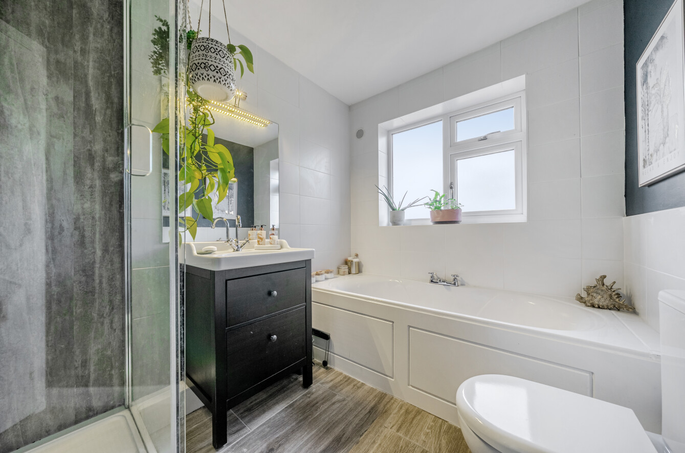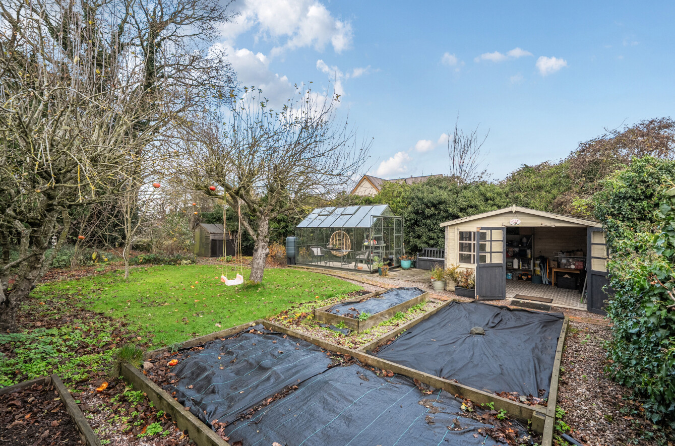 The principal bedroom overlooks the rear garden, with fitted wardrobes and sliding doors leading directly outside, a serene morning retreat. The remaining bedrooms are well-proportioned, offering flexibility for family, guests, or a home office.