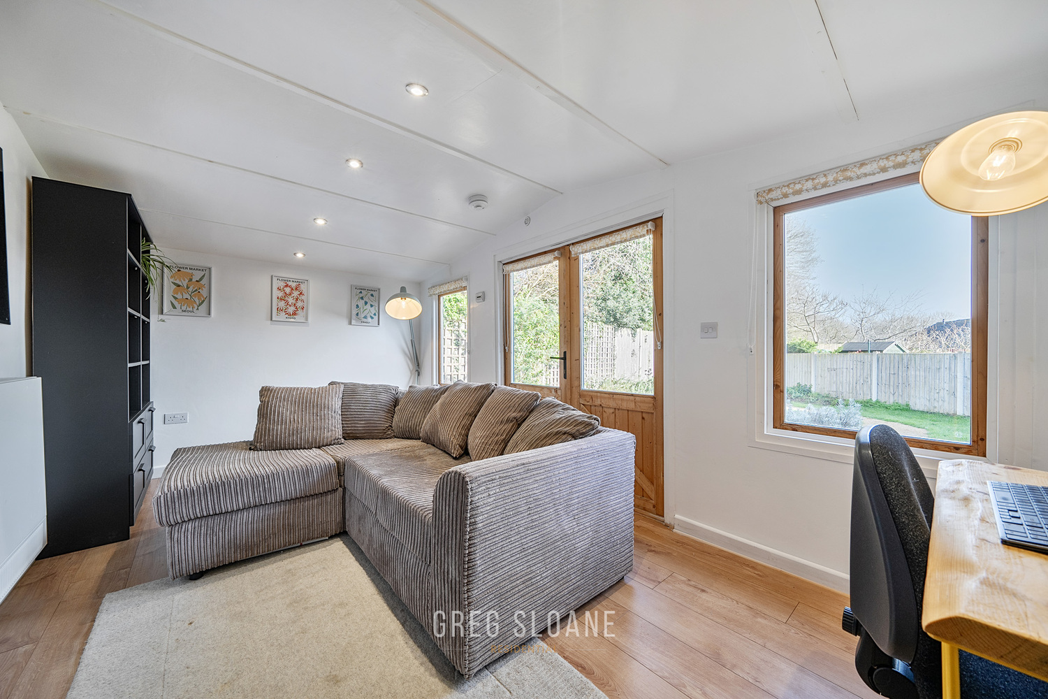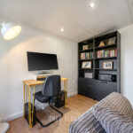 The large garden studio is far from your average outbuilding. Constructed from slow-grown spruce (rather than pine), it’s built to last and fully insulated, with heating and power already installed.