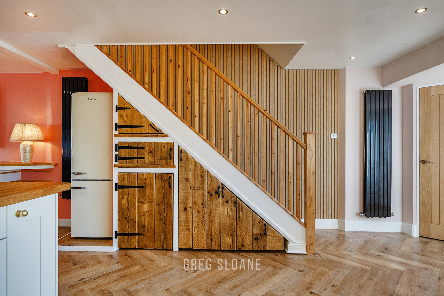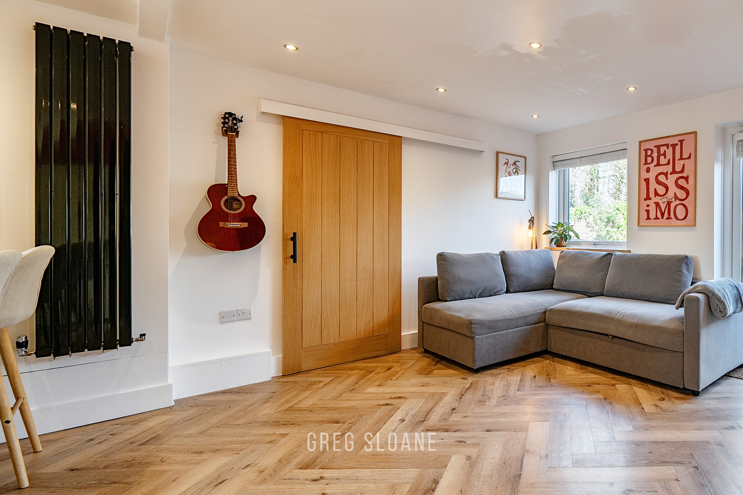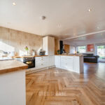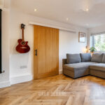 The ground floor has been opened up to create a stunning open-plan living space – perfect for entertaining and equally ideal for keeping the family connected day to day. If preferred, the layout could easily be partitioned again, but as it stands it offers a wonderfully sociable and impressive living environment. The clever built-in storage units in the living area are another feature we absolutely love.