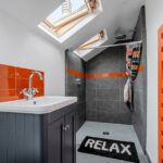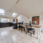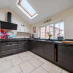 Inside the main house, the kitchen and utility room benefit from wet underfloor heating, creating a practical and comfortable living space. The kitchen is fitted with an induction hob, fridge freezer, and dishwasher.